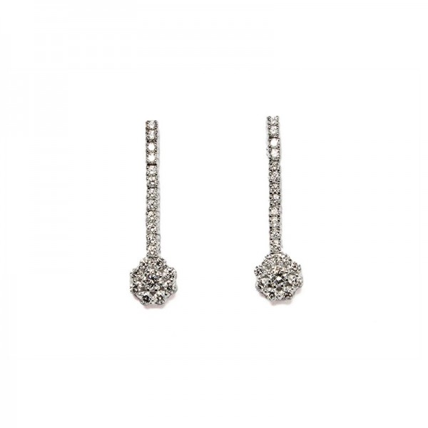 Boucles d'oreilles en or blanc 18 carats serties de diamants taille brillant